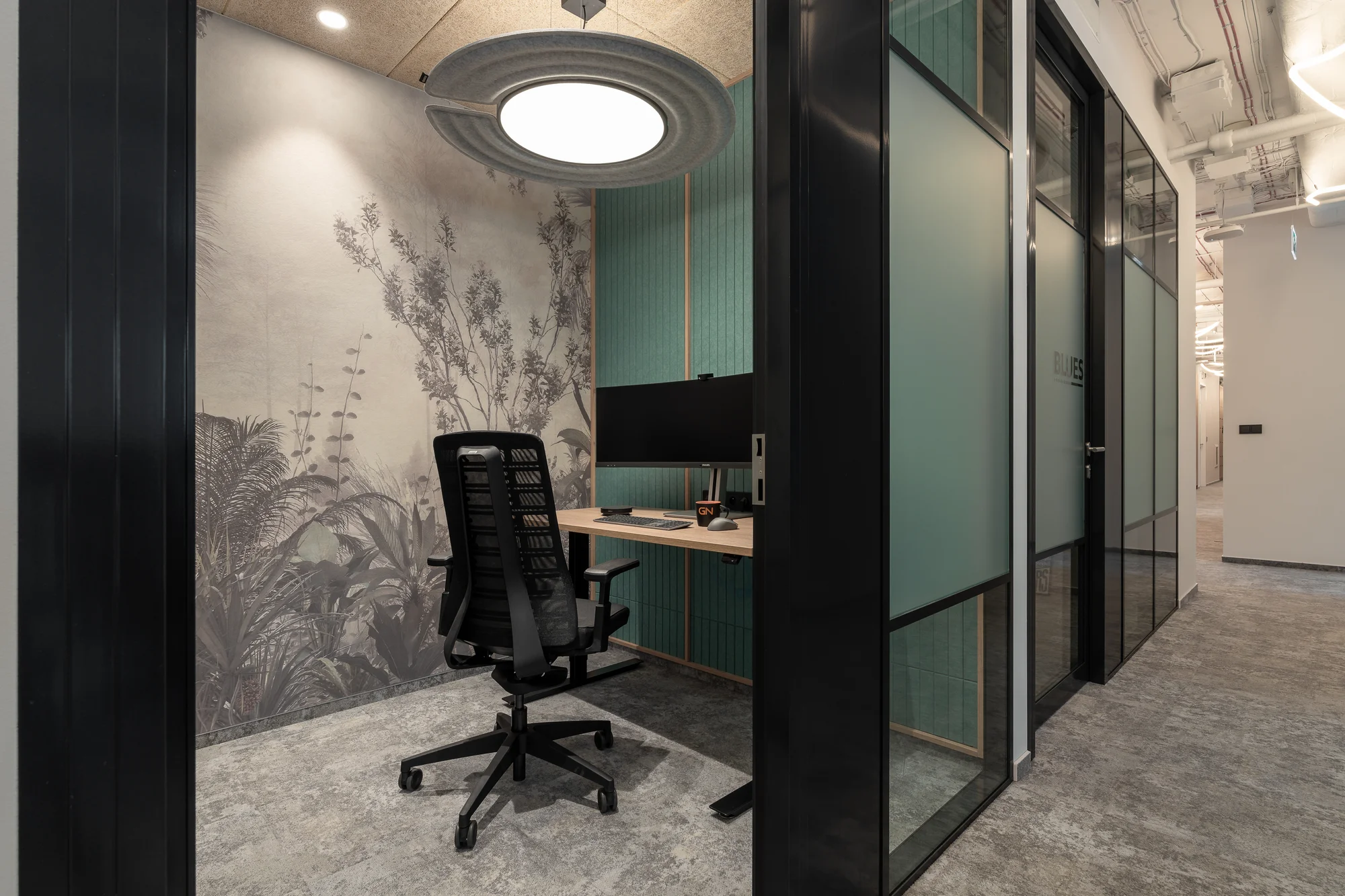 As part of this project, we installed glass partitions in the SILENCE LOFT and ULTRA SILENCE LOFT systems, providing excellent acoustic comfort, as well as a curved wall in the SILENCE LOFT system, which serves as a distinctive design feature. The project was completed with STANDARD and SOLID doors, precisely finished and perfectly matched to the overall concept.